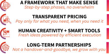 Creative Co-Pilot gives you access to a strategic, design-driven support team without needing to hire in-house, manage freelancers, or figure everything out yourself.